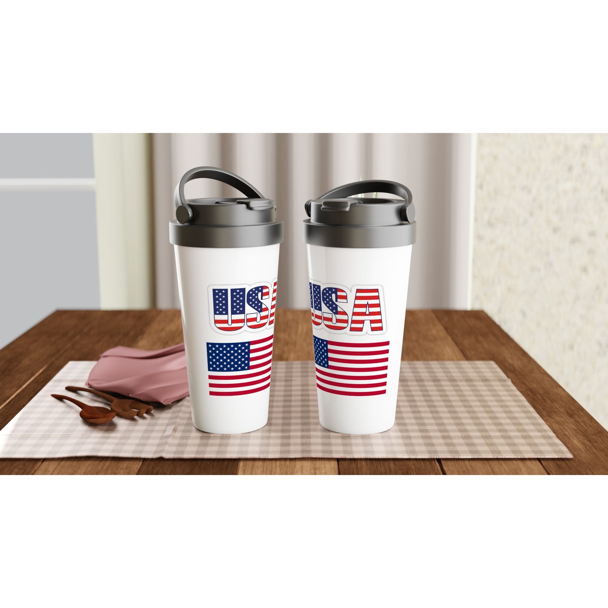 15oz witte roestvrijstalen reisbeker - VS-thema -