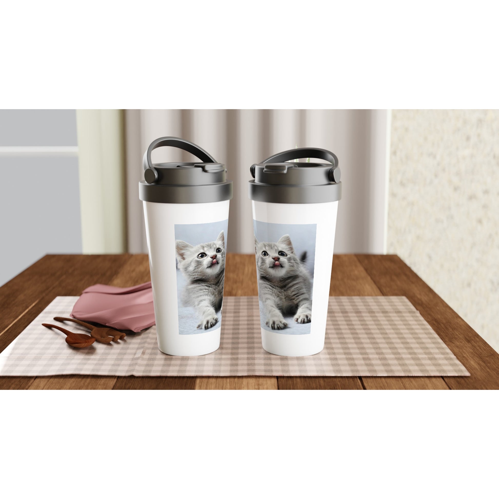 15oz witte roestvrijstalen reisbeker - Kitten -