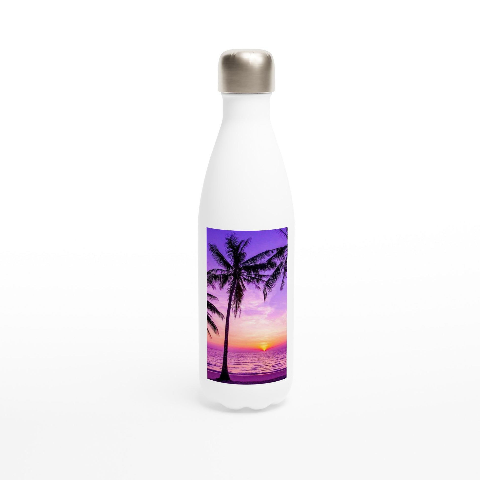 17oz White Stainless Steel Water Bottle - Beach Sunset